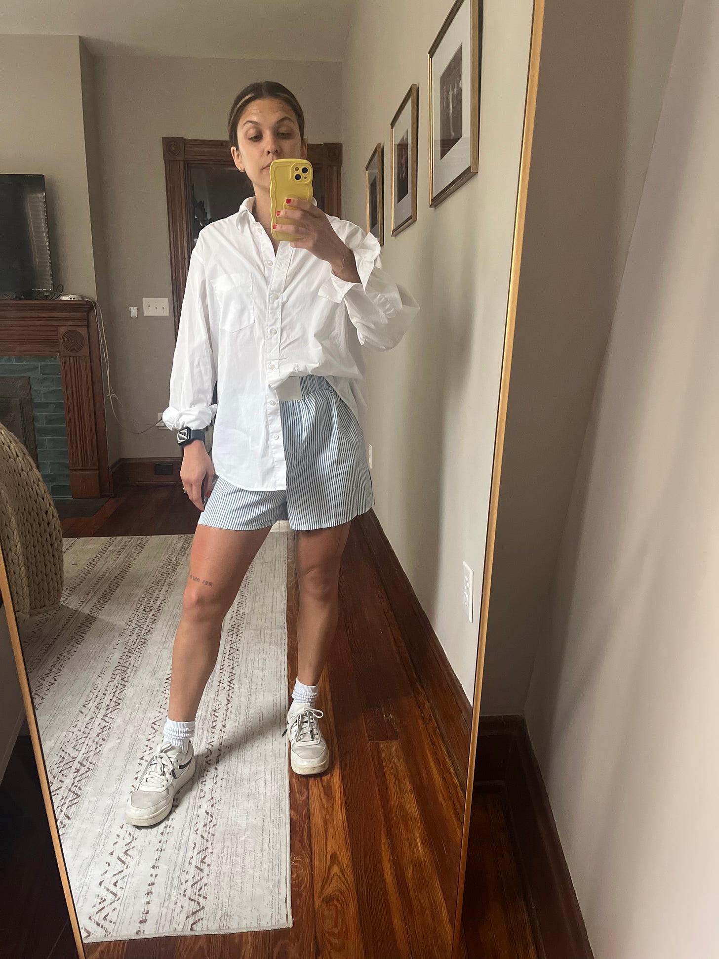 Boxer shorts. This is the vibe for me all summer. Pairing along graphic tees, button downs, and small tank tops.