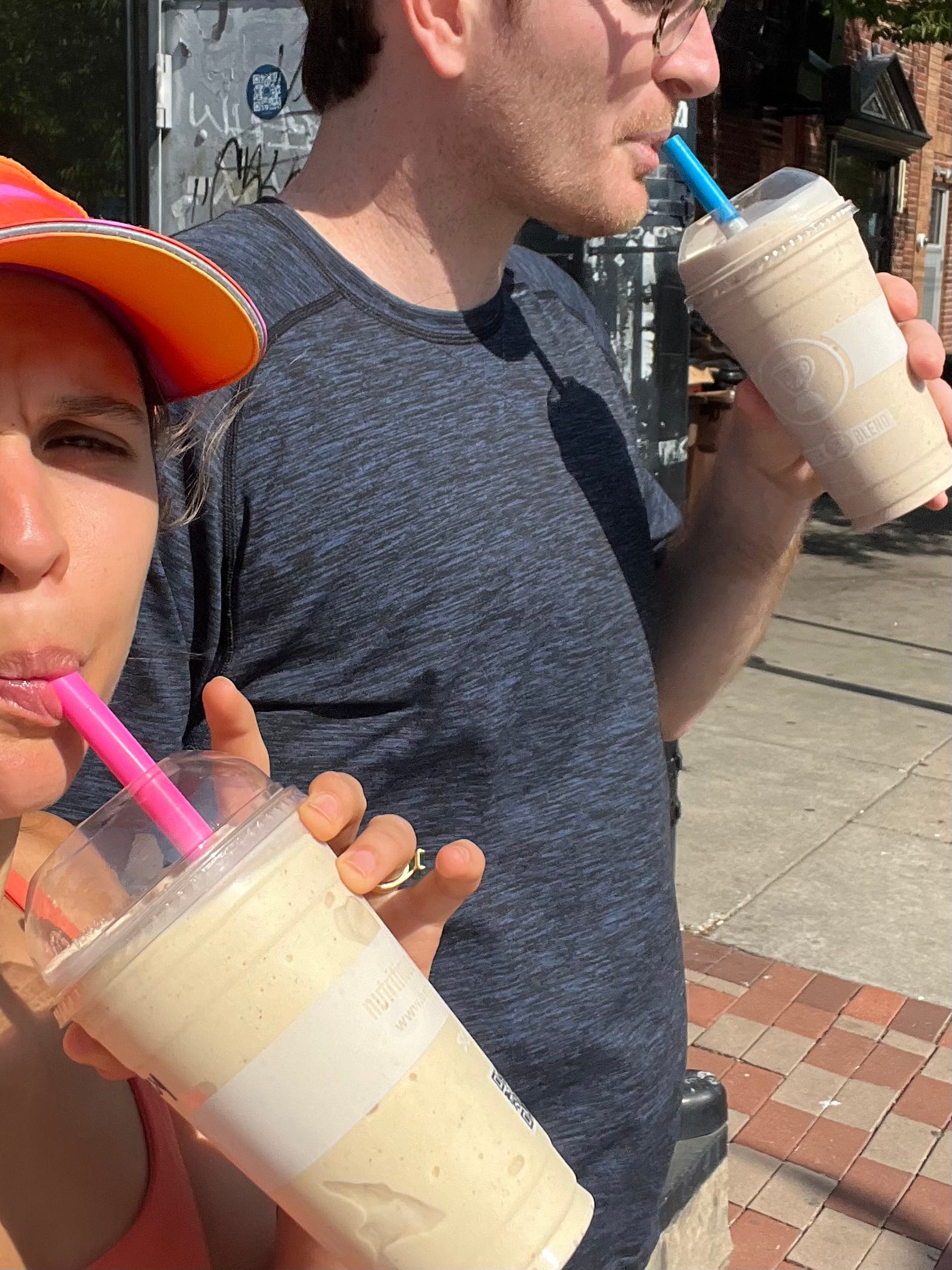 Smoothies! Riding that smoothie train hard right now — but it is mostly happening in the way of me stopping by Better Blend (my god, the cinnamon roll is literally MAGIC?!) entirely too frequently so trying to bring the same hype I feel about their smoothies to some concoctions at home. While our at home smoothies are not even in the same stratosphere as BB, I have been going hard with this combo: banana, chocolate protein powder, a few dollops of greek yogurt, splash of maple syrup, a shot of espresso, and frozen cauliflower (this is a must for texture and extra veggies!).
